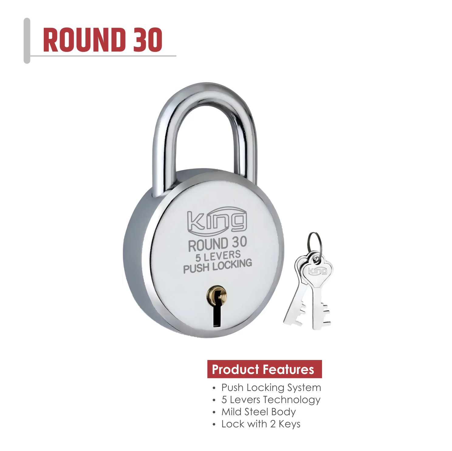 3) Mild Steel Body :- The lock provides solid protection and strength while maintaining affordability. It's ideal for gates, sheds, cabinets, and general-purpose locking needs.